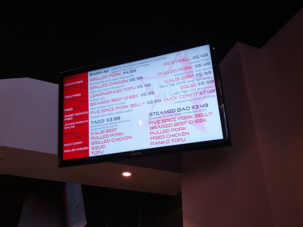 The menu is broken down into: banh mis (sandwiches), steamed bao (buns) and Korean tacos: