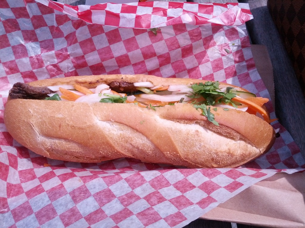 This week I tried the Kalbi Beef Banh Mi (short ribs, kimchi and Asian bbq sauce). It was delish and the combo of flavours and textures was spot on!