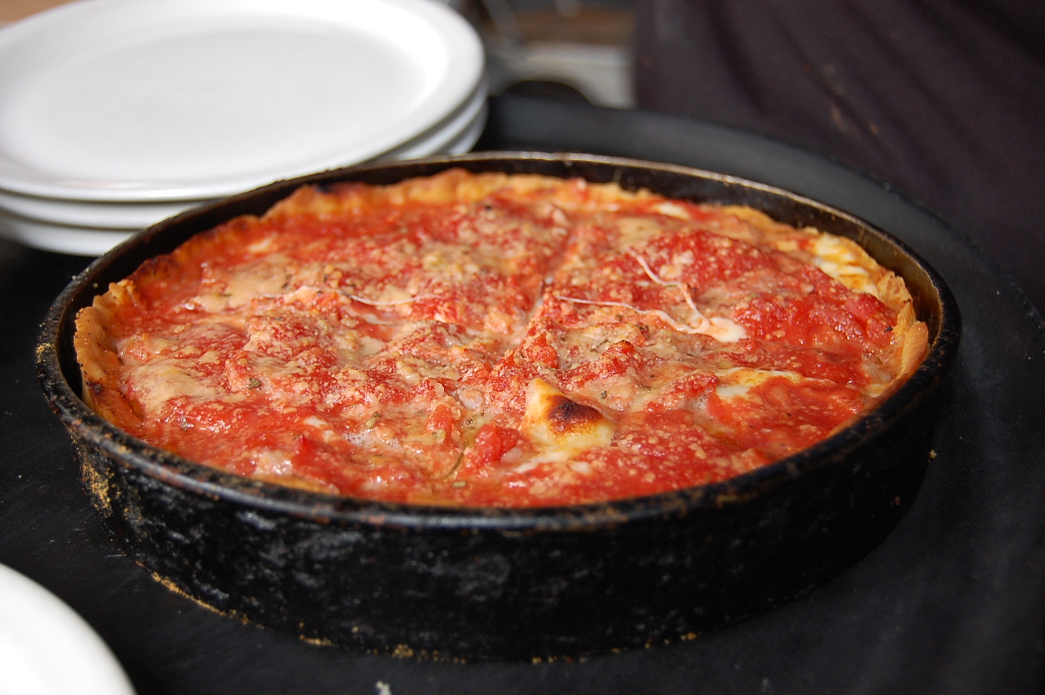 We were expecting deep dish pizza to have a heavy, greasy crust. Much to our surprise, it was flaky and buttery! Their secret recipe has been passed down from generation to generation.
