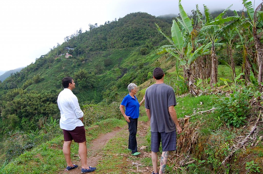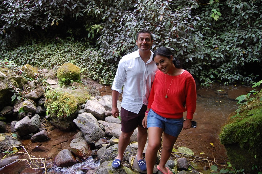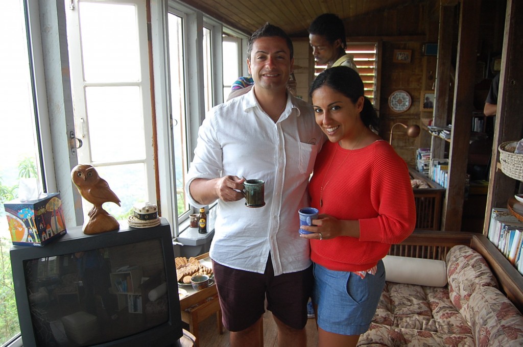 We were curious to see what the coffee plants look like so Carolyn took us on a tour around the estate. My husband and I trailed behind as she effortlessly hiked through the rainforest; she put us to shame with her athleticism (a certified diver, professional skier and expert hiker to name a few of her wonder woman abilities). The air is quite thin at 3,500 – 4,500 ft altitude and the 75 acre coffee farm will give even those in top shape a solid workout. That being said, Carolyn is incredibly patient and stopped along the way for us to “take pictures” (i.e., so we could catch our breath). On our first stop, she plucked a ripe berry from a coffee tree and split it open to reveal the two seeds inside (aka coffee beans).