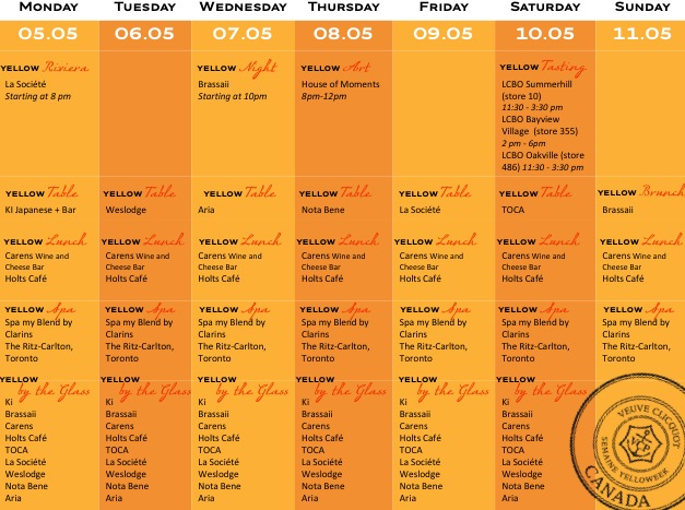 I hope you get a chance to treat yourself to a glass or two of champagne at one of events this week. Oh, and good news for those living in Alberta and BC: Yelloweek will travel to Calgary and Edmonton (May 19-21) and Vancouver (May 22-24). Á votre santé!