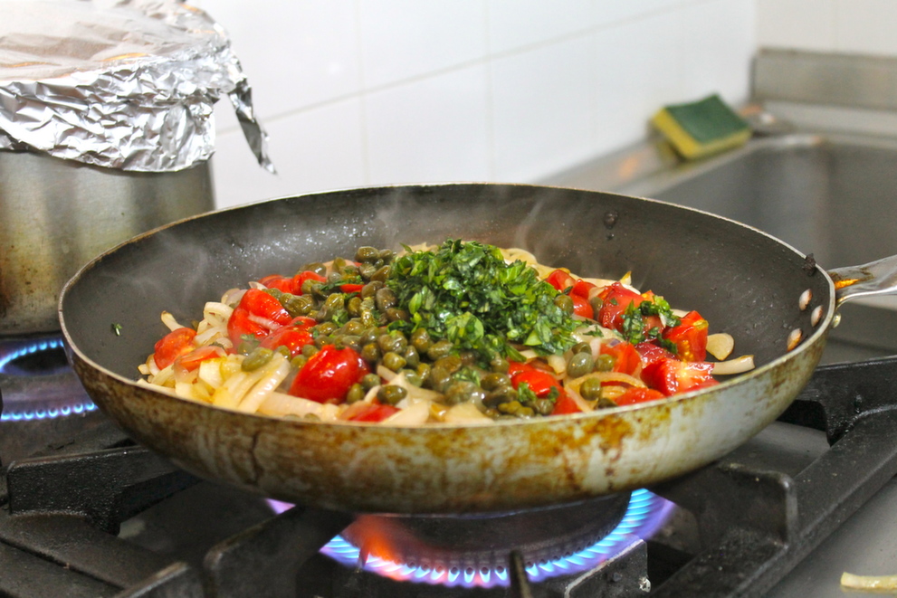 But nothing compared to the delicious tomato and caper sauce we whipped up (which accompanied the grilled pork belly that was prepared by the chef). Made with plump capers, Santorini tomatoes, onions, basil and a generous helping of Vinsanto, the caramelized sauce was to die for.