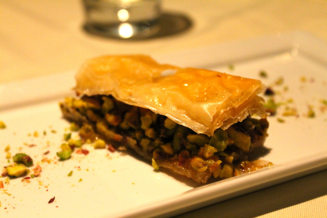 We ended our meal with a pistachio-filled and honey-glazed baklava: a dessert I hope to learn how to make the next time I’m in Greece!