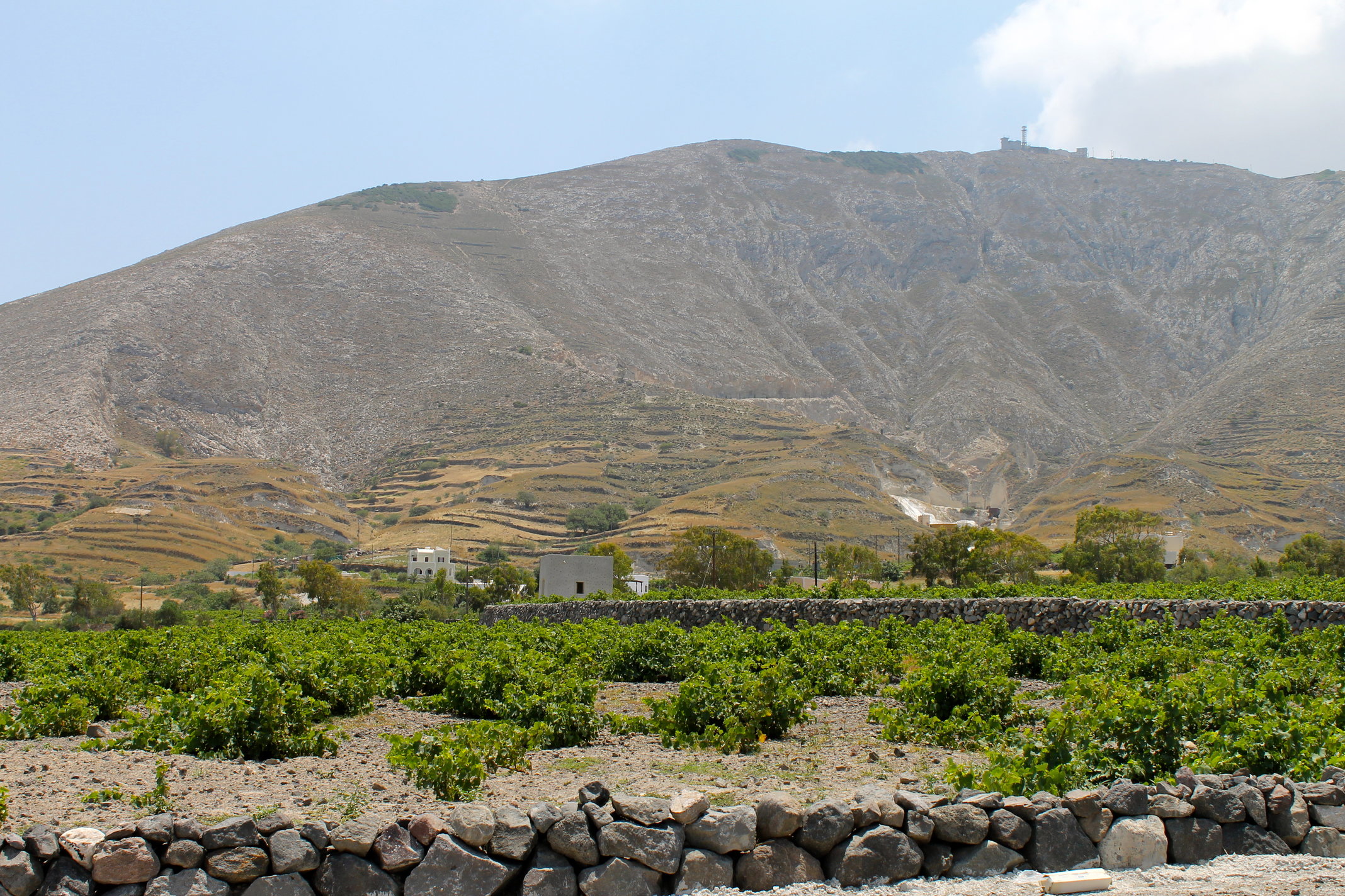 We also learned about the wines of Santorini during our cooking class. Georgia introduced us to the island’s most common varietals: Assyrtiko (a crisp, dry and acidic white), Mavrotragano (one of the few reds produced on the island) and their exceptional Vinsanto (a sweet, sun-dried white wine). Although the wineries in Santorini have reduced in size over the years, the local grapes yield a range of high-quality wines. I found it fascinating that winegrowers prune vines in the shape of protective baskets to shield grapes from the high winds and intense heat. This cultivation method makes for some unique and low-lying vineyards!