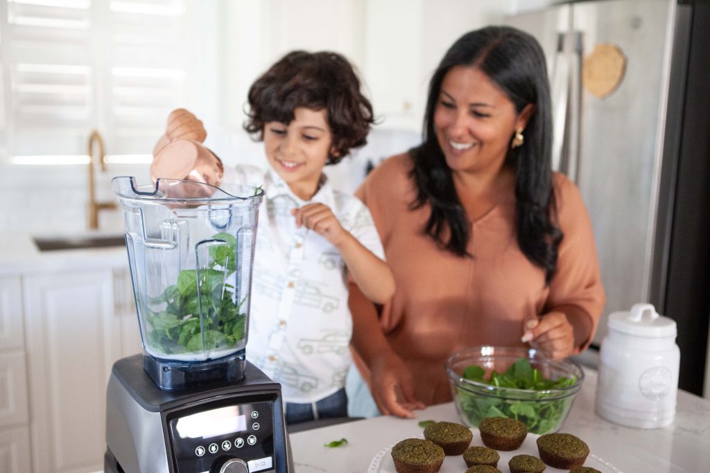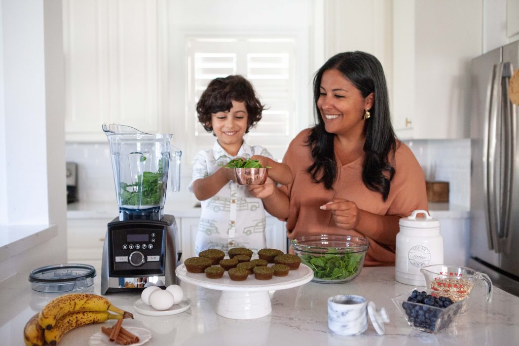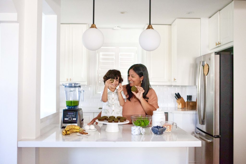 1) Brainstorm a fun name for your recipes. I called these spinach & banana blender muffins “Green Monster Muffins” and watched Luka’s eyes twinkle with excitement. He got over the spinach part real fast when he realized it’s an essential ingredient in these monster creations!
