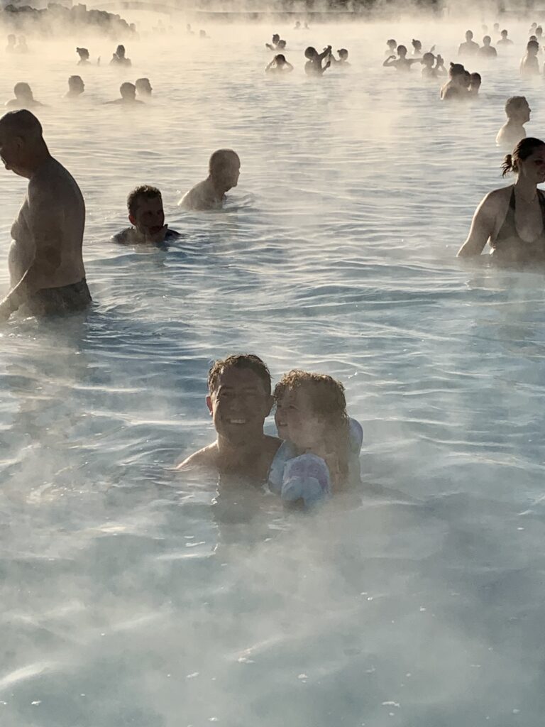 We also visited the Blue Lagoon, Iceland’s most famous geothermal pool, to check it off the bucket list. While it’s touristy (and pricey), Izzy loved it. Bonus: kids aged 2–13 enter free with an adult and flotation armbands are provided for children 8 and under.