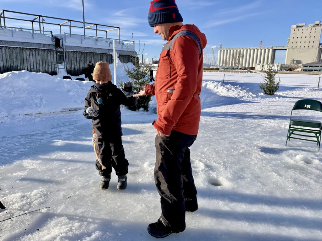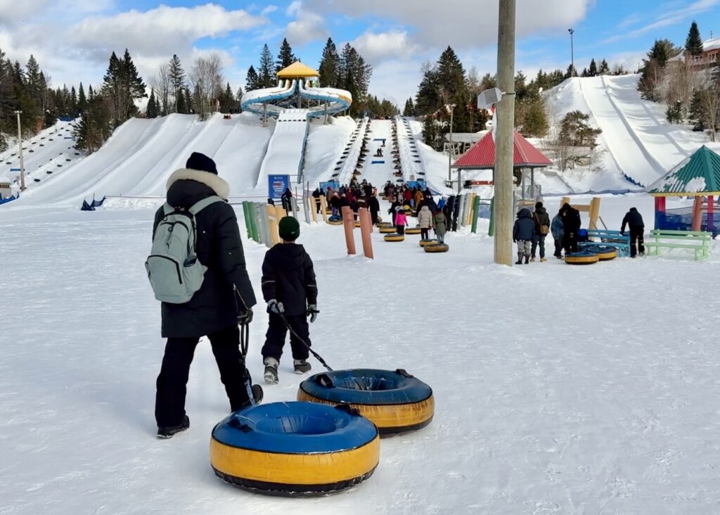 I had no idea you could go ice fishing in Québec City! Located on Louise Basin at the Port of Québec, Village Nordik turned out to be one of our favourite family-friendly activities on this trip. Once you arrive onsite and pay the activity fee (Mini Fishers under 5 are free) you’re given a fishing rod along with some bait before being escorted to a pre-drilled ice hole. Chairs are also provided so you just take a seat as a family and patiently wait. It took a bit of time to get the hang of it, but Luka caught his first fish!! Bonus: you can keep the fish (quota of 5) so we gave the trout to our friend who enjoyed it for dinner.